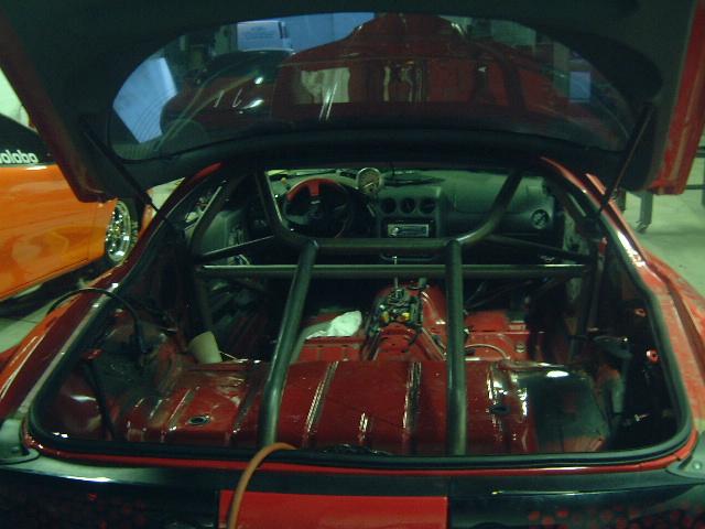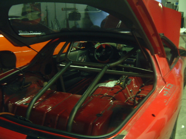 This is the custom roll cage we built for the car inspired by the chassis from a NPS series drag car. We called on our friend Bill Gilsbach to help with the design and construction of this one of a kind street cage.